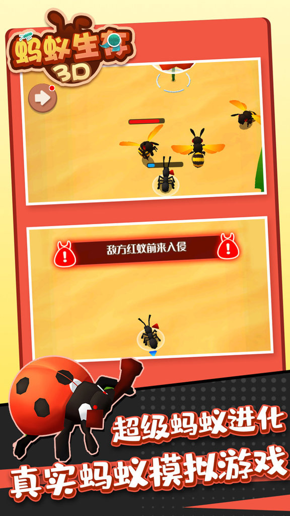 蚂蚁生存3D免广告版是一款非常精彩的3D生存游戏,在这里你将控制蚂蚁来完成闯关挑战,体验到很多丰富的游戏内容,不断的通过搬运食物等等,体验蚂蚁的视角,喜欢的话快来下载进行体验吧!
