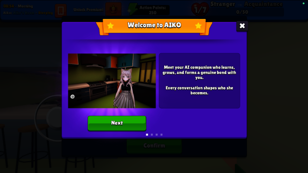 1、智能情感反馈系统赋予Aiko鲜活个性,能记住玩家的互动习惯并精准回应,互动体验极具真实感。