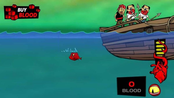 双视角核心操作:玩家既可以扮演食人鱼,通过滑动或点击屏幕操控它潜伏靠近废弃海盗船,撞击船只并啃食落单海盗,同时还要躲避海盗的鱼叉、炸药等反击;也能切换到海盗视角,点击或滑动屏幕操控鱼竿钓鱼,面对食人鱼突袭时需快速点击闪避或用道具反击,一旦反应不及时,海盗就会受伤并减少血量。