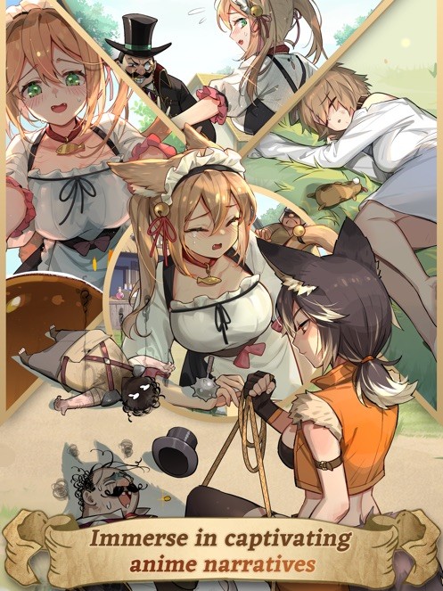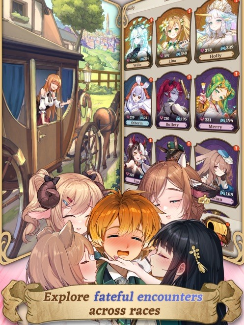 角色养成与互动:角色分为家人和伙伴两类,家人的亲密度影响流浪儿收益,加护力则关联邀约时的加护点数,可强化对应伙伴实力;伙伴能通过经验提升等级解锁经营技能,还可借助相性搭配提升整体战力。玩家可通过精灵之泉抽取角色,也能和角色互动提升亲密度,解锁专属剧情,同时游戏多次联动热门动画,比如推出《月光下的异世界之旅》的巴、澪等联动伙伴,搭配专属藏品和套系加成,丰富养成维度。