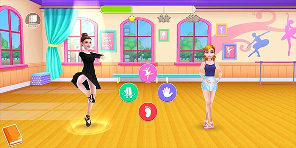 画风与氛围适配主题:游戏采用精致的卡通欧美画风,教室、练舞房等校园场景设计细腻,搭配贴合舞蹈场景的专属背景音乐,能让玩家沉浸式感受舞蹈专业生的校园生活与舞台上的闪耀时刻。