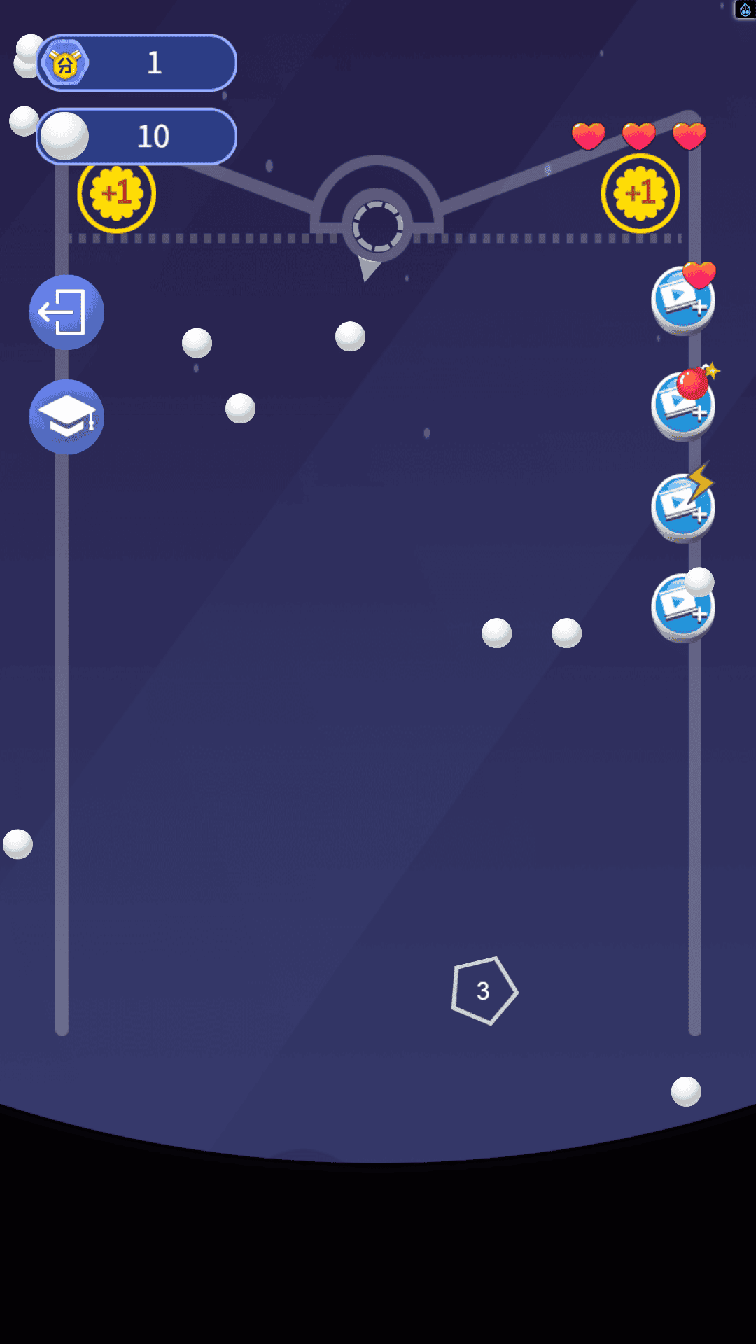 3、初始拥有定量生命值,小球掉落则消耗生命值,生命值耗尽闯关失败,合理把控弹射节奏延长生存时间。