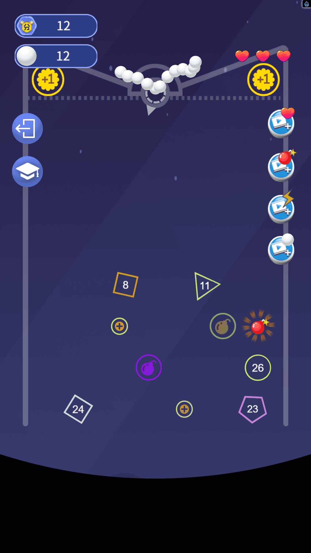 3、砖块的位置会发生变化,玩家要及时调整射击角度,让所有弹球都能按照合适路线移动。