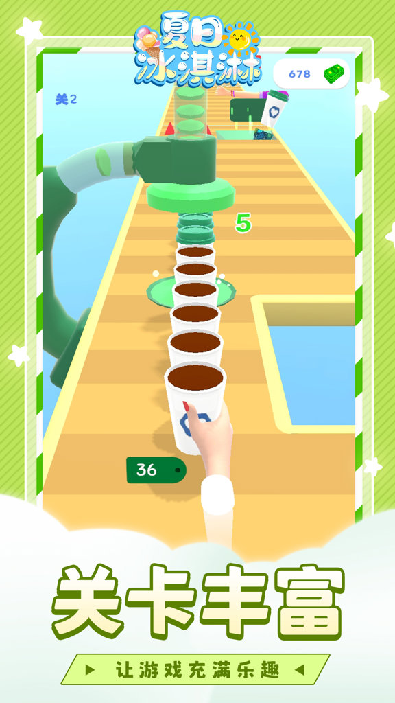 3、收集到的纸杯越多,能够灌装的冰淇淋就越多,得分越高。