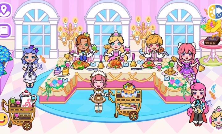 2、多场景互动探索,玩家可随意拖拽角色穿梭于派对大厅、花园、剧院等区域,触发隐藏剧情与彩蛋。