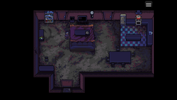 探索与资源管理:俯视角探索公寓各区域(房间 / 楼道 / 储物间),搜索食物、武器、药品与工具,武器有耐久度,可能损坏或断裂;需平衡饱食、精神与健康,过度恐慌会影响战斗与判断。