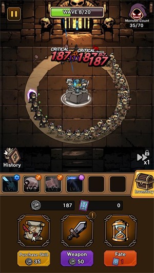 技能随机:每波结束 / 商店刷新时,随机出现 3–5 个技能(输出、控制、生存、BUFF),可叠加升级,组合专属流派(如 AOE 爆发、持续灼烧、减速控场)。