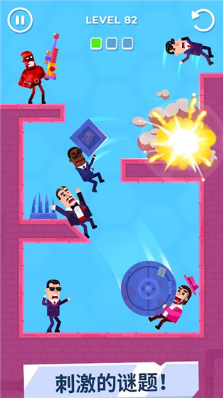 击打大师(Hitmasters)是一款竖屏物理射击 + 策略解谜手游,核心是靠有限子弹与物理反弹 / 连锁反应消灭敌人,主打低门槛单指操作、魔性机关互动与关卡渐进挑战,适合喜欢碎片时间玩策略解谜与轻度射击的玩家。