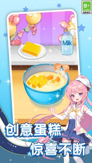 1、以美食蛋糕为创作主题,围绕蛋糕制作的全流程设计玩法,让玩家深度体验从原料到成品的完整创作过程,充满生活气息。
