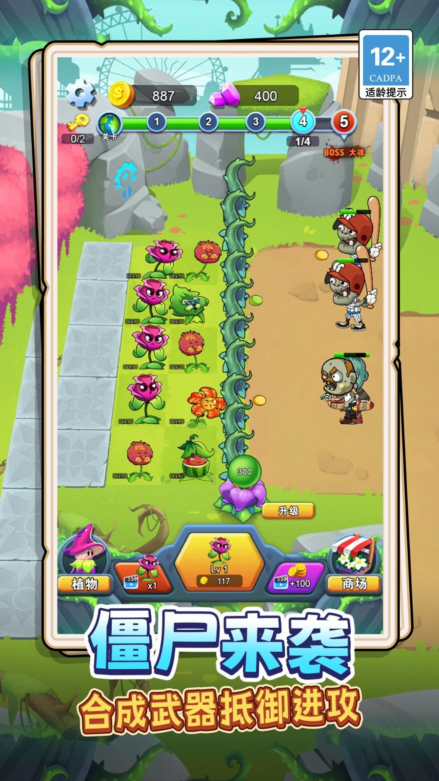 2.通关可获得资源,用于解锁新植物或升级现有植物的生命、攻击等基础属性,从而提升整体阵容强度,应对后续更复杂的关卡挑战。