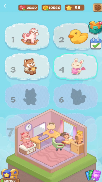 3.玩家可以通过完成任务获得金币,解锁更多风格的家具和装饰品,打造独一无二的梦幻房间。