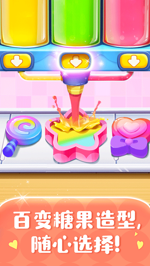 制作:选水果 / 糖浆等原料→搅拌 / 熬煮→调色(48 种颜色可选)→注入模具(20 + 萌趣造型)→冷却包装,全程点击 / 拖拽操作,新手易上手。