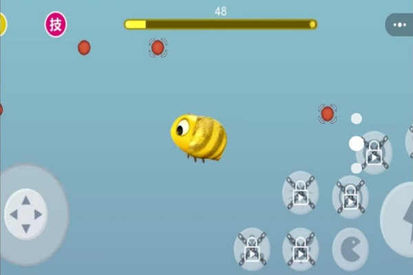 2、当场景中出现红色小球类目标时,操控蜜蜂精准移动至目标位置,吞噬后可提升上方进度条数值。