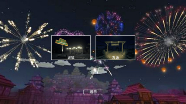 2、游戏包含了2个不同的地点,一个是城镇,一个是农场,我选的是农场放烟花。