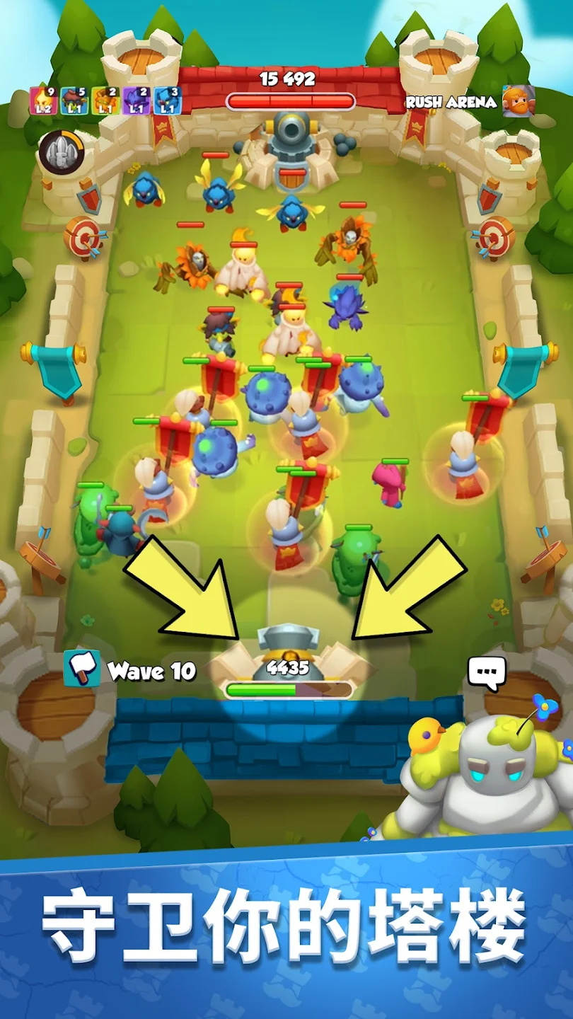 城堡修缮:每波结束后及时修复城墙,提升生命值上限,避免被快速破防。