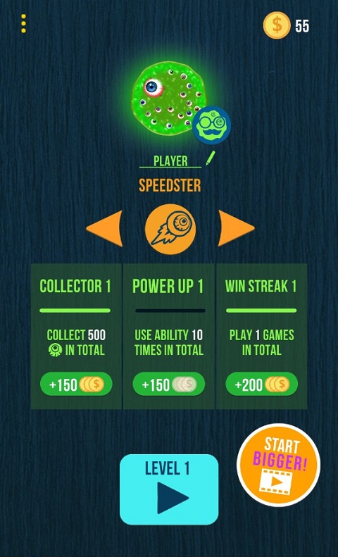 基础规则:开局为小型软泥,用摇杆控制移动,吞噬地图刷新的能量豆豆、小体积软泥来变大;只能吞噬比自己小的目标,被更大软泥触碰则会被吞噬淘汰。