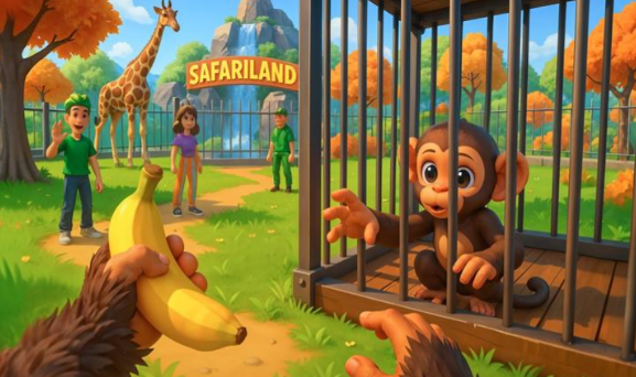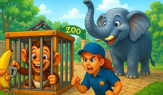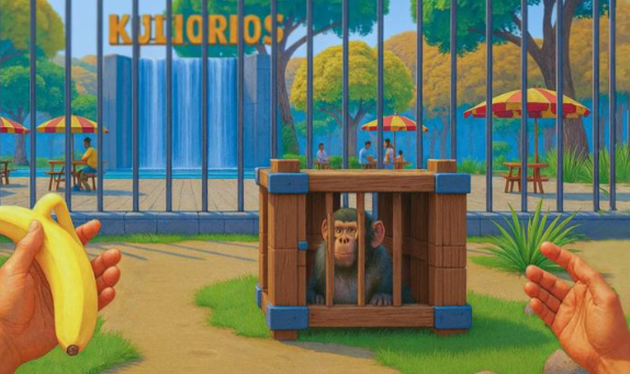 猴笼内物体(香蕉、树枝、游客物品等)均可抓取、投掷、使用,构建个性化恶作剧玩法,无固定流程,每局体验有差异。