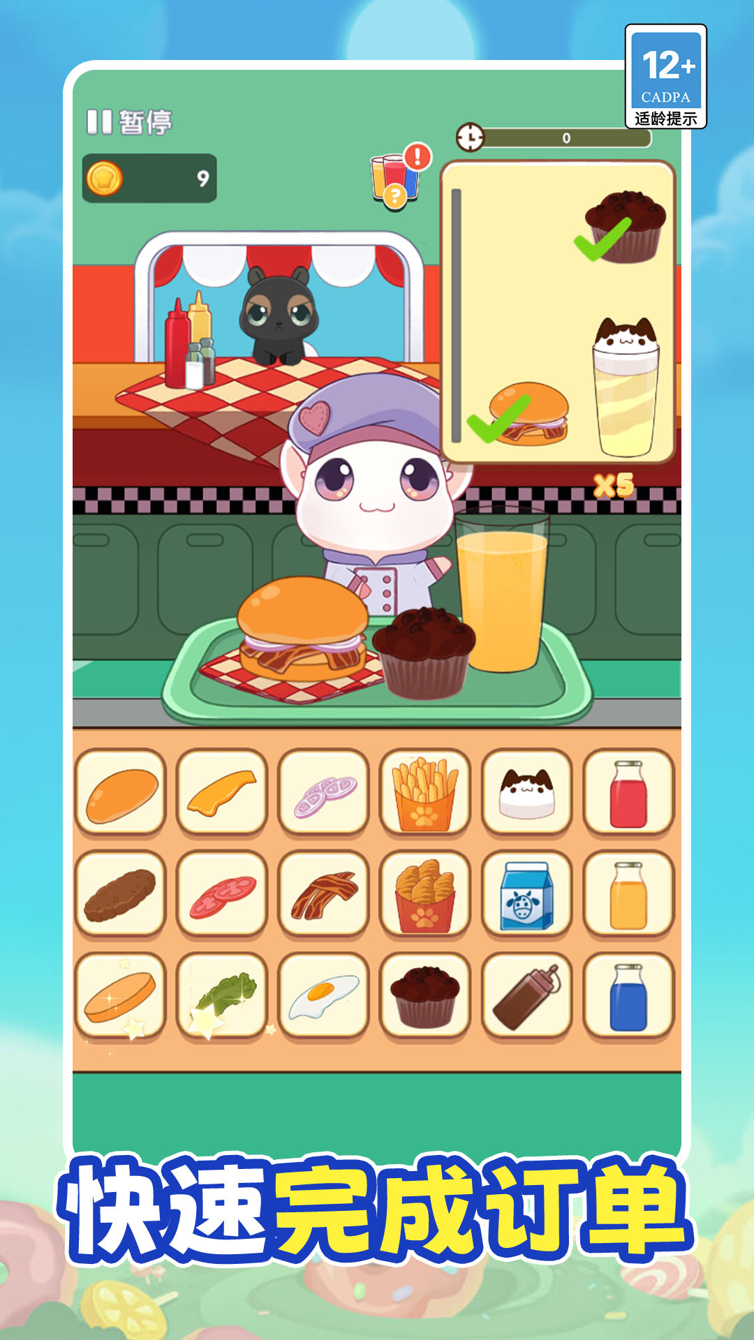 3.卡通画风清新可爱,角色与食物造型讨喜,配合轻松的背景音乐,营造出舒适治愈的游戏氛围。