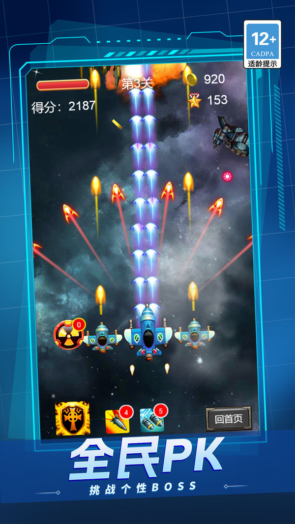 4、被敌方击败,可选择重玩本关,满血复活或强化战机,优化策略后重新挑战,解锁更高难度关卡。