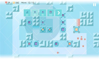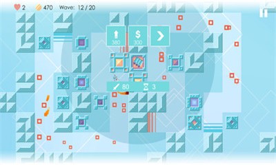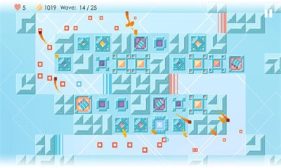 游戏设定在蓝红对抗的极简世界观,玩家要在不同迷宫路线上建造、升级防御塔,抵御一波波红色敌人的进攻,守住终点的蓝色核心即可通关。核心流程如下: