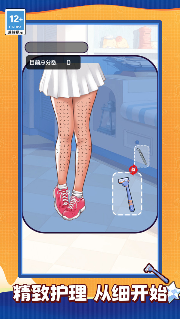 2.游戏的核心流程是使用各种美容工具来处理顾客腿上不同类型和密度的多余毛发与角质。