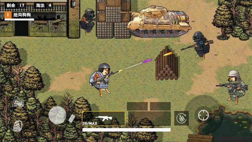 2、战术选择丰富多样,可正面冲锋也可伏击暗算,不同修狗与武器搭配衍生多样玩法;
