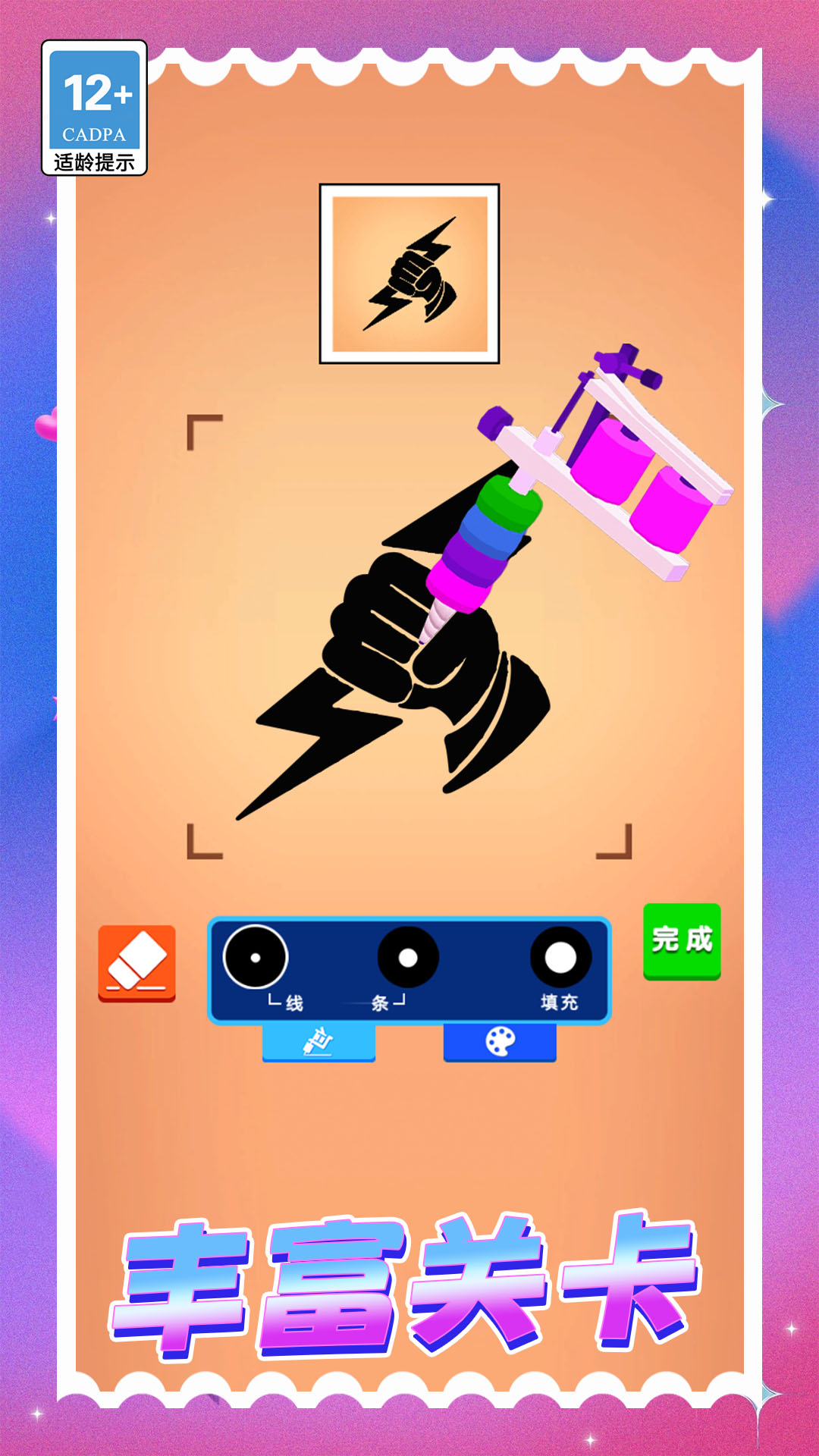 2. 你需要不断尝试新的线条走向、几何形状或抽象组合,系统会根据你的创作独创性给予实时反馈与奖励。