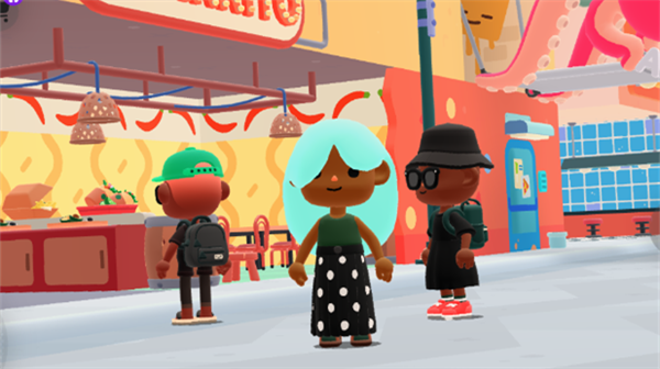 场景与互动系统:含广场、地铁、水域等可探索区域,支持涂鸦、游泳、双人互动,部分区域可经营店铺。