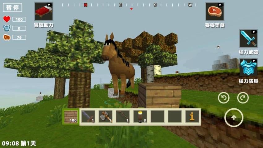2、提供了几乎无限大的开放世界,所有地形和资源由像素方块构成,玩家可以自由挖掘、放置或破坏。