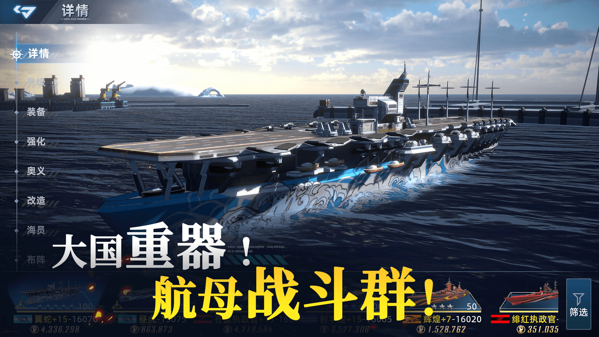 多维战术空间:海战 / 空战 / 潜艇战互补,舰船搭配与旗舰技能组合多样,适配不同战术偏好。