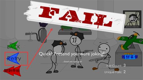 4、若行动失败触发警报或被捕,点击蓝色Retry按钮重新尝试,调整策略、更换道具或路线再次挑战。