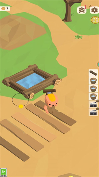 4、在野外生存中狩猎和采集生存必需品,逐渐打造出舒适的生存环境和丰富的生活,饲养动物。