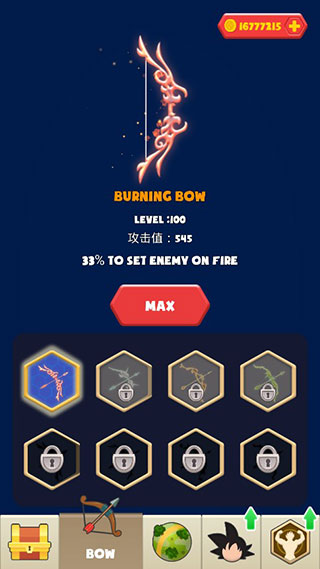 3.合理升级装备:根据关卡挑战,有针对性地提升弓箭属性(如精准、伤害、射速),并适时使用角色的专属技能,能让闯关事半功倍。