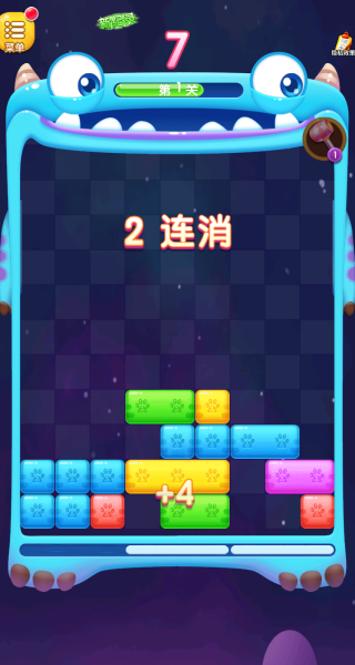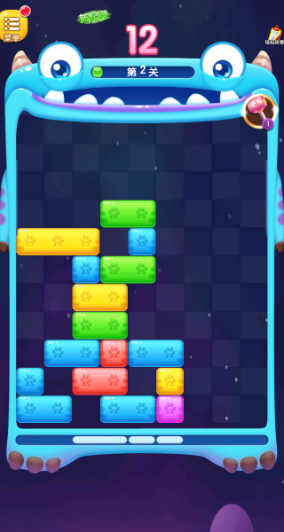 1、进入关卡后,需观察底部待放置的方块,通过滑动操作将方块移至网格内,优先填充某一行的空位,当整行被方块填满时即可触发消除。