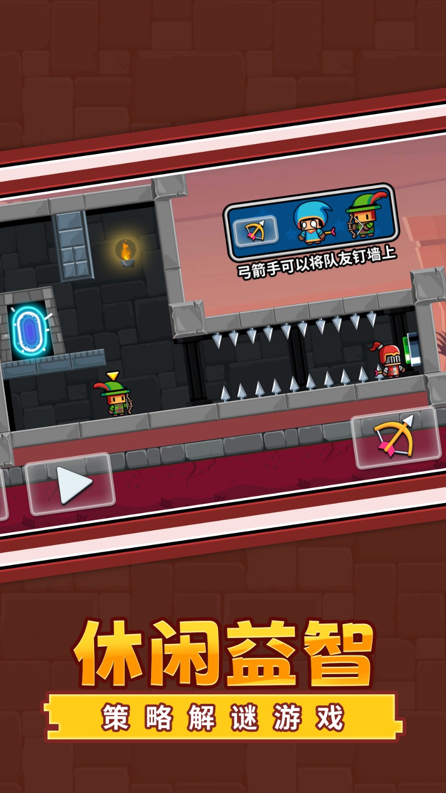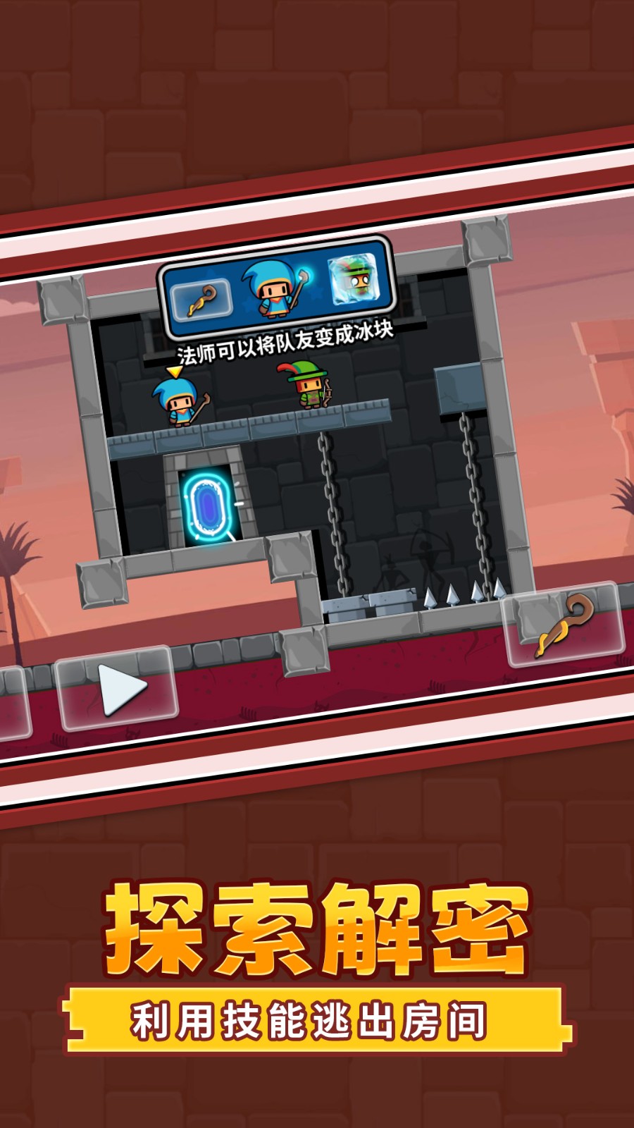 3.进入第一章的第一个关卡,玩家需要灵活切换控制勇者与弓箭手这两个角色,成功拯救被困的法师即可闯关。