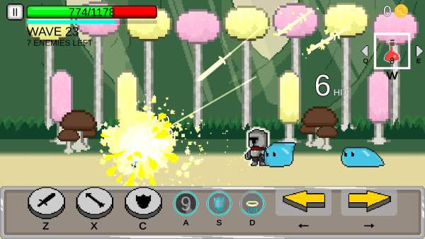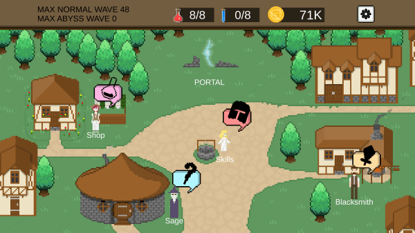 波次闯关:点击 portal 进入关卡,左侧控制移动,右侧用长剑、弓箭、防御等操作,坚持波次越多敌人越强,生存到最后挑战 BOSS。