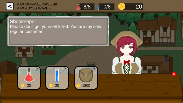 装备强化:blacksmith 强化武器,shop 购买恢复药水,金币可精炼装备提升战力。