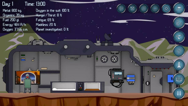 星球随机生成:每个星球的重力、大气、光照、资源分布不同,生存策略需动态调整(如远星太阳能效率低,需用燃料补能)。