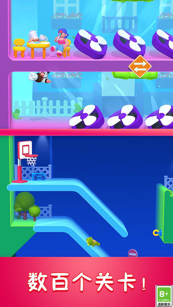 3、关卡设计在不同的主题乐园中展开,每个场景都拥有独特的视觉风格、背景音乐和与之匹配的障碍物设计。