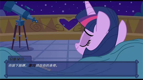 核心亮点:游戏中有很多不同的区域可供玩家自由探索,每个地域都有独特的属性和特质。玩家可以与自己有好感的小马角色交流互动,增加对方的好感度。此外,游戏中还有很多好玩的小活动,如到商店购买东西、去打工、到森林摘蘑菇等。