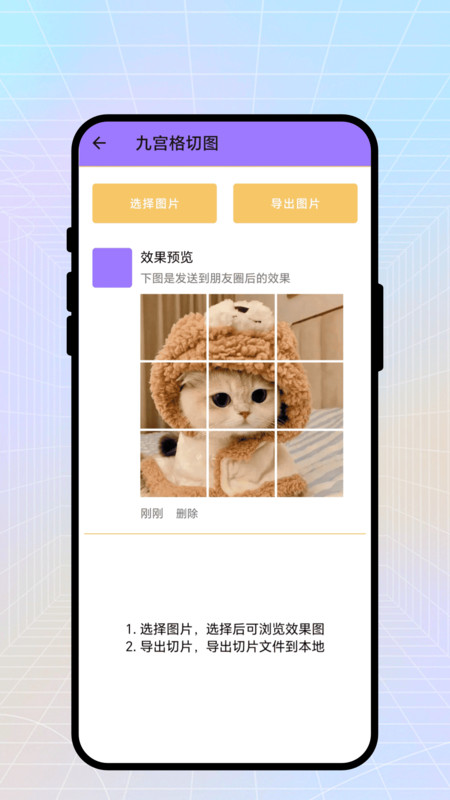 3、九宫格切图功能实用,能将一幅画快速分割成九宫格,方便制作个性拼图,玩法多样。