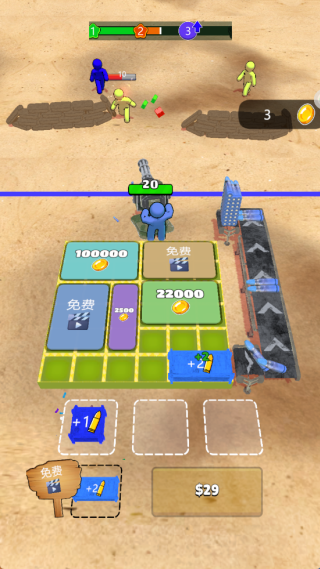 3、每波都会出现一定数量的敌人,玩家要消耗金币购买新的弹药箱,进一步提升角色实力。