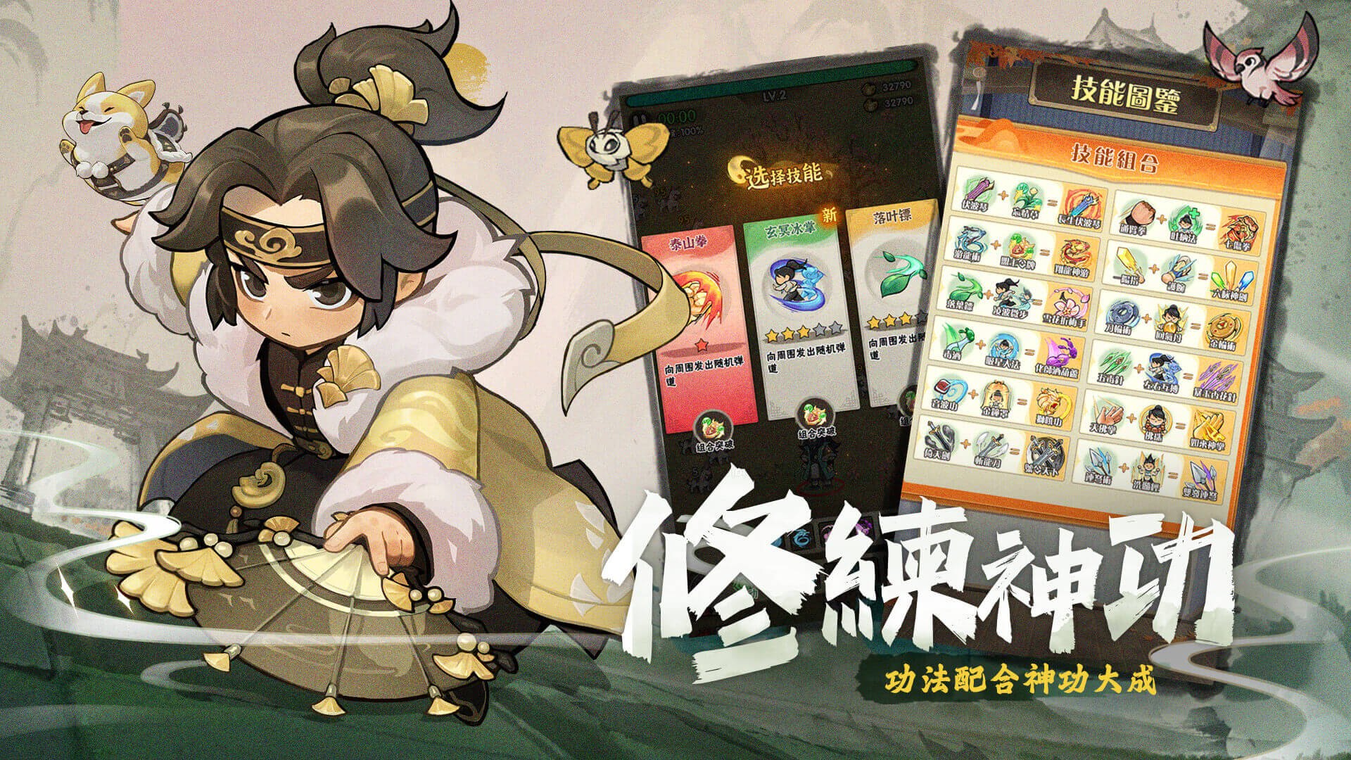 1、肉鸽元素下的随机技能机制:角色升级时将解锁随机技能,每局战斗的技能组合均不相同。通过搭配出最契合的武术技能组合,能够触发丰富多样的效果,使每场战斗都兼具新鲜感与策略深度,让玩家尽享随机应变的割草乐趣。
