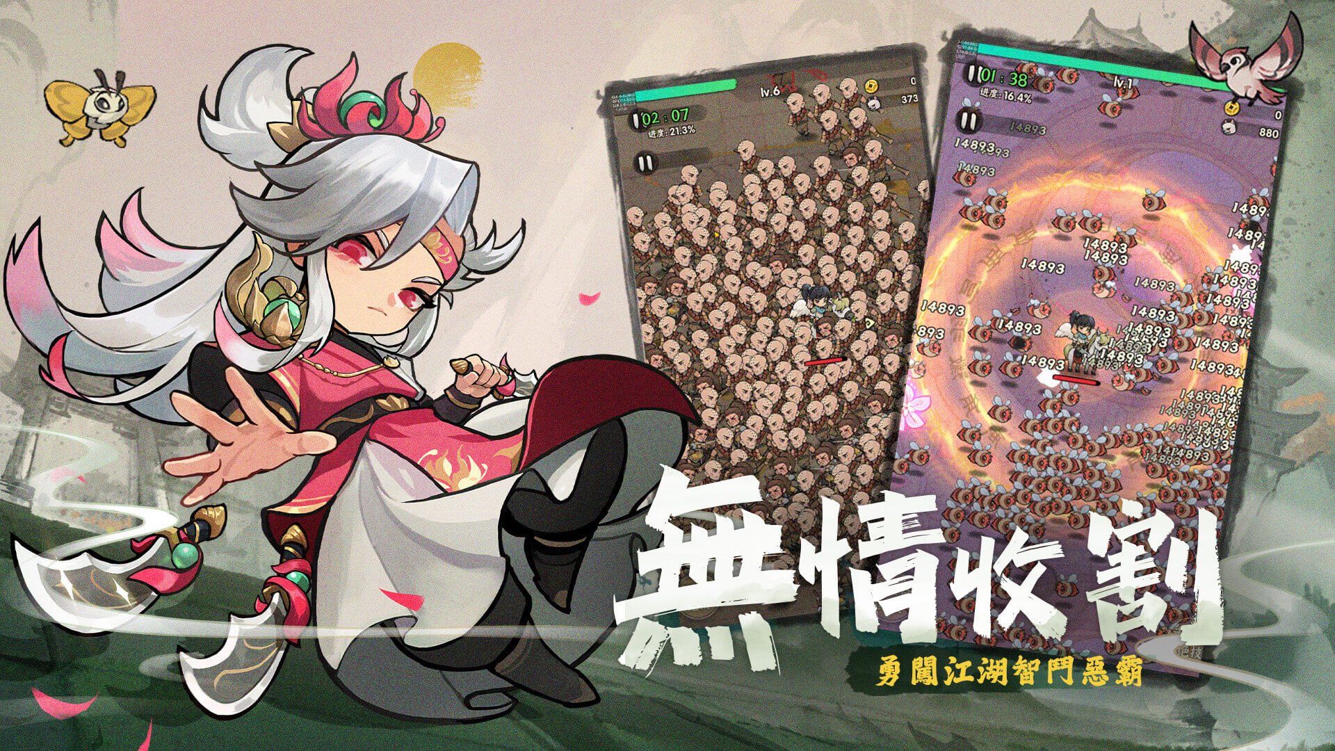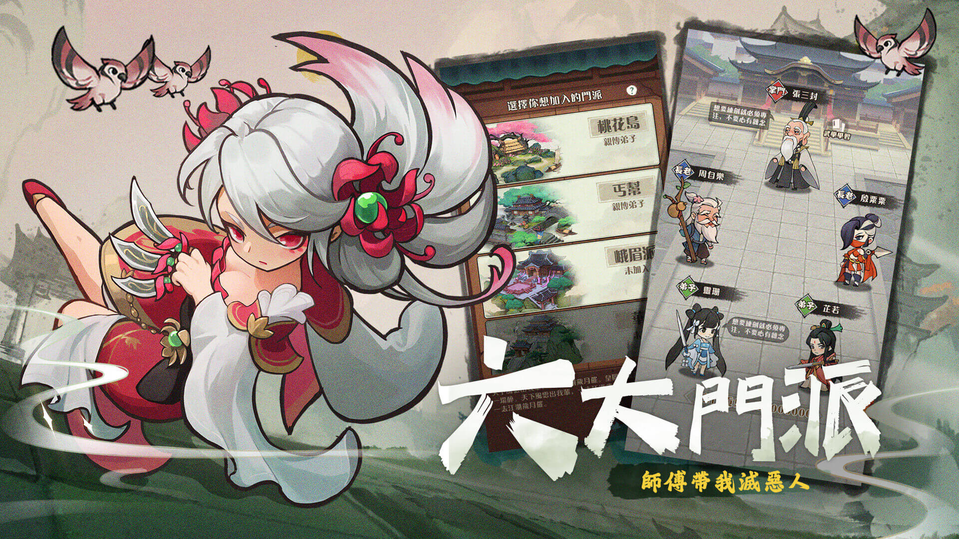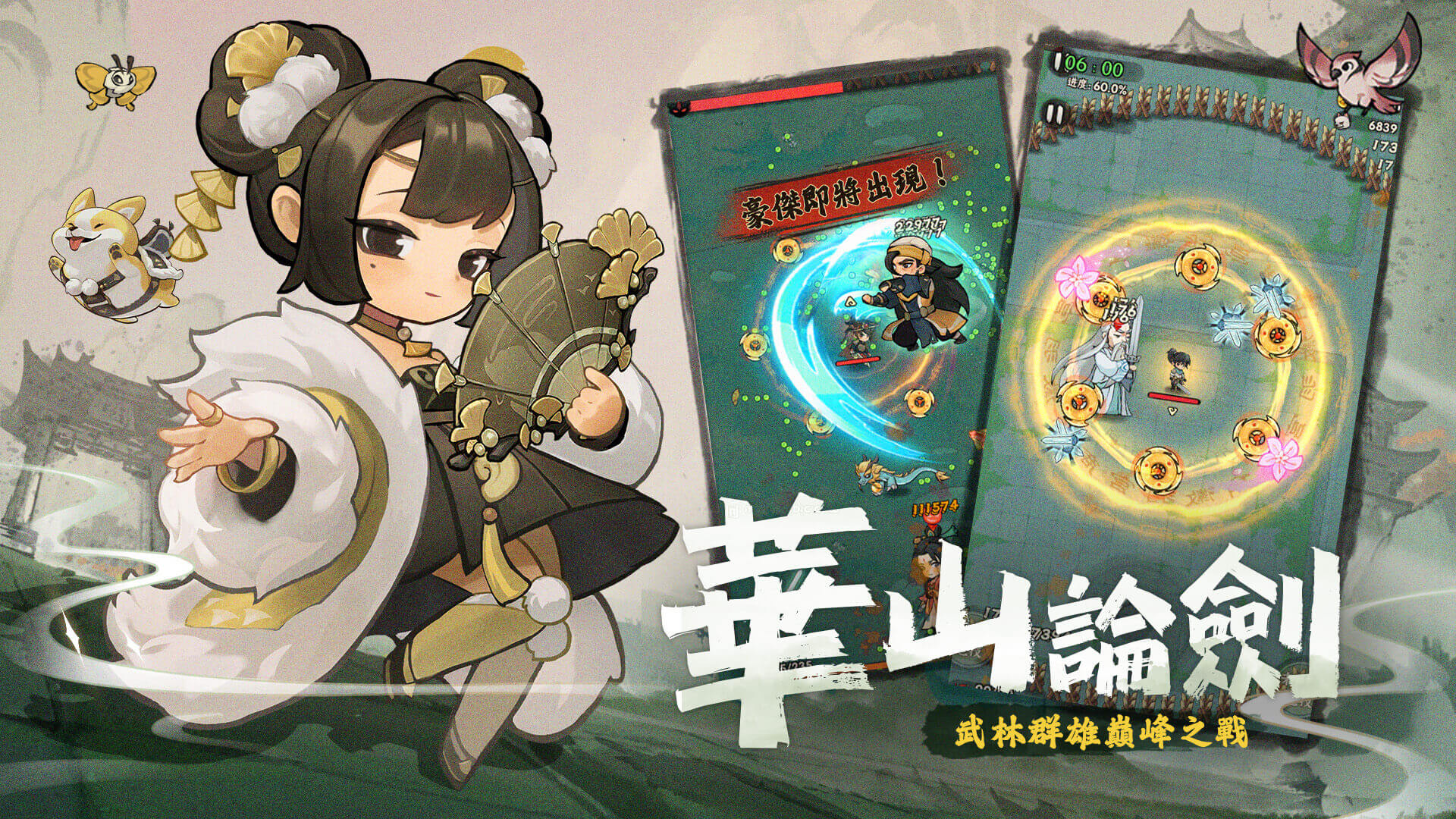 Q 版画风,武侠沉浸:色彩鲜艳的 Q 版动画形象,炫酷技能特效,还原武侠江湖氛围,剧情围绕祖传秘籍展开,增加沉浸感。