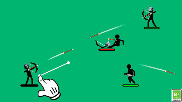 2、长按屏幕拉弓蓄力,滑动调整瞄准角度,松手释放箭矢,击败对手或完成目标即可通关。