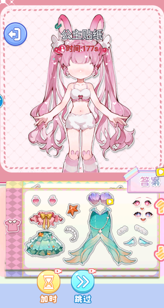 3、我选的是公主贴纸,你要为美丽的公主去自由的搭配服装和配饰。