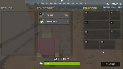 像素枪战大吃鸡是一款热门的竞技吃鸡游戏,整体有着像素的游戏界面,和众多的玩家们一同竞技看看谁可以顺利存活到最后,在庞大的地图内探索作战,收取各种的工具武器,强化自身的战斗能力,注意观察好实时的情况和敌人们的位置!
