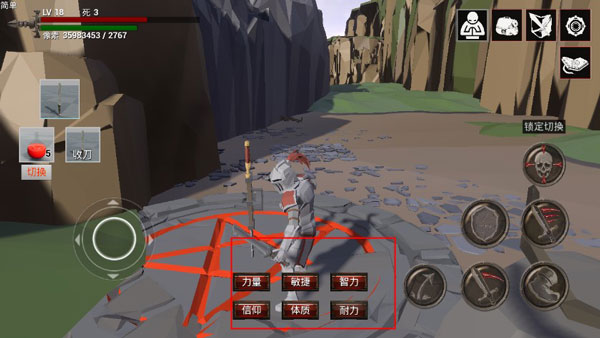 2、基础操作:虚拟摇杆移动,按键负责攻击、格挡、跳跃、闪避、弹反;支持上下攻击组合连段(追击、位移、击飞、破防等)。