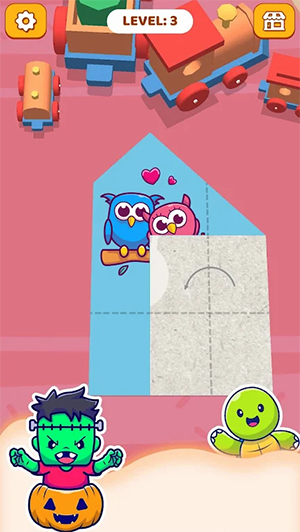 极具挑战性的益智游戏,将全面考验您的空间思维和创造能力。游戏中的每个关卡都设计巧妙,需要玩家仔细观察和思考。您将看到一张印有特定形状的纸张,需要通过精准的折叠来还原目标图形。这种独特的玩法不仅能培养耐心,还能提升解决问题的能力。游戏还特别适合喜欢动手实践的玩家,让您在虚拟世界中体验折纸艺术的魅力。
