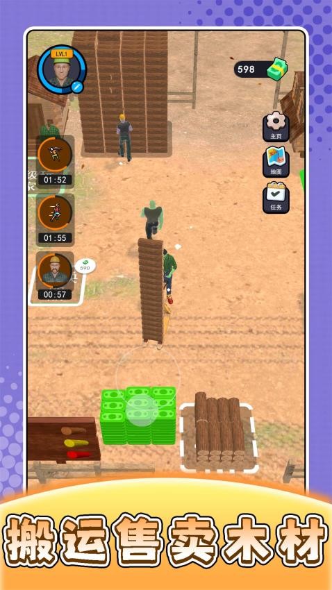 3、伐木工作结束之后你可将这些木材分别售卖到不同地方,能够得到更多顾客的喜欢,收获大量资金。